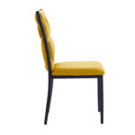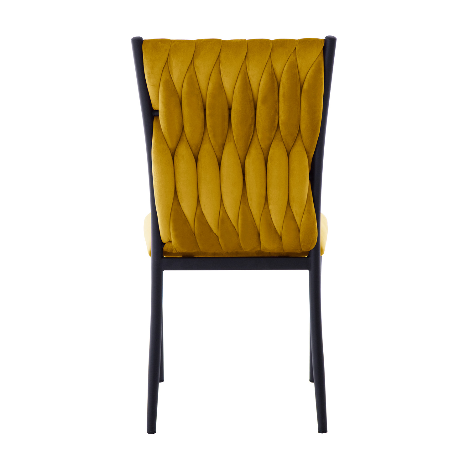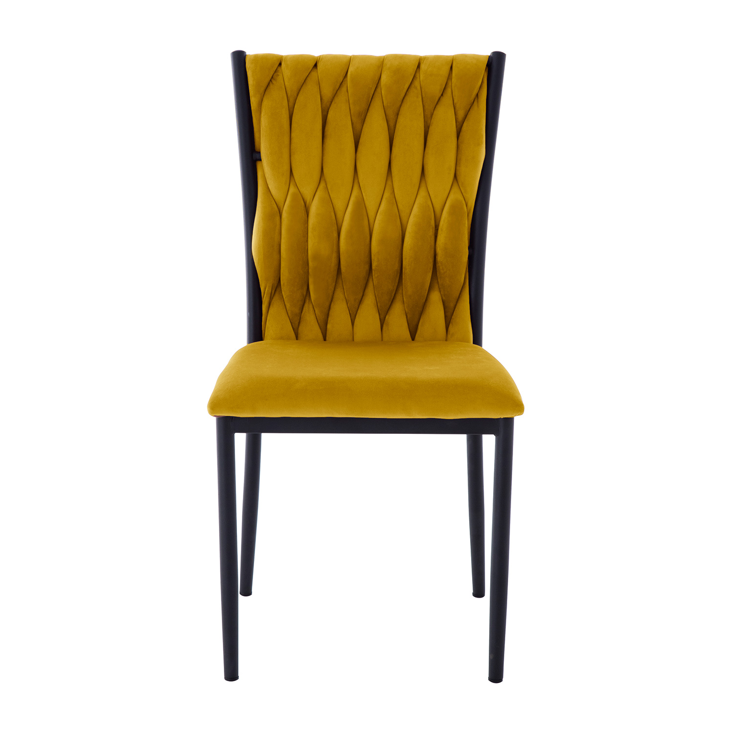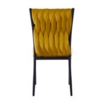 Tool EMORY kuldkollane samet. Tooli iste ja seljatugi on polsterdatud ja kaetud sametkangaga. Seljatoe mahuline, pehmeid laineid meenutav polster on saavutatud kasutades punumistehnikat. Kattematerjal: 100% polüester, 260g/m². Martindale 25 000. Tooli jalad ja alusraam on valmistatud metallist ja viimistletud musta pulbervärviga. Tooli üldmõõdud on 47x59xH93cm, istme laius 46cm, istme sügavus 42cm, istme kõrgus 48cm. Seljatoe kõrgus 51cm. Kaalupiirang 120kg.
