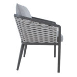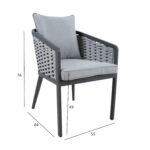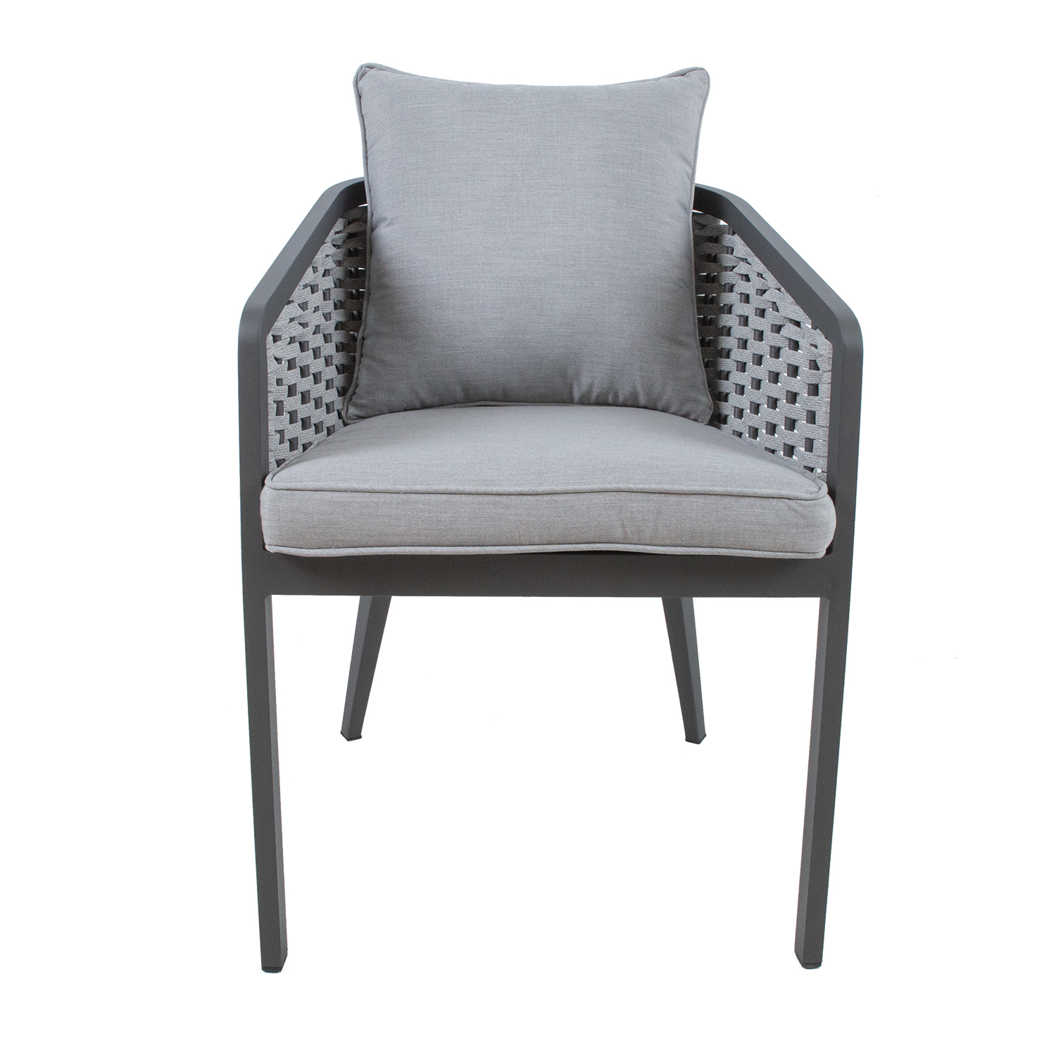Tool MARIE 55x64xH76cm, hall. Tooli jalad ja raam on valmistatud alumiiniumist ning viimistletud halli pulbervärviga. Seljatugi on kaetud helehalli nöörpunutisega. Mugavad ja pehmed padjad kuuluvad komplekti. Padjakatted on valmistatud helehallist olefin kangagast. Kaalupiirang 100kg. Toode on muutlikes ilmastikutingimustes hästi vastupidav ja lihtsalt hooldatav. Kaitset ilmastikuolude eest vajavad ainult padjad. HOIUSTAMINE: suvehooaja lõppedes soovitame aiamööblit hoiustada siseruumides. Puhastage ja kuivatage mööbel enne hoiule panekut. Kasutage hoiustamiseks kuiva ning hea ventilatsiooniga ruumi.