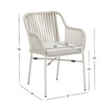 Tooli üldmõõdud on 55,5x73xH90cm. Istme laius 45cm, istme sügavus 41cm, istme kõrgus 44cm. Seljatoe kõrgus 57cm. Käetoe kõrgus maast 61cm.