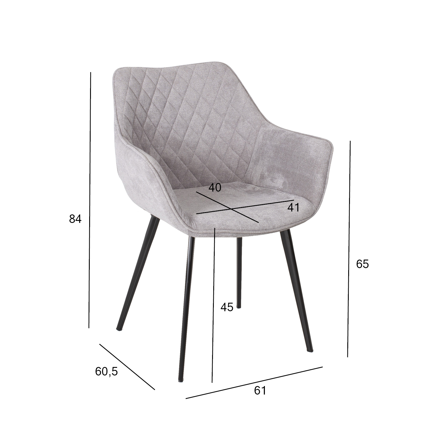 Tooli üldmõõdud on 59x62xH90cm. Istme laius 43cm, istme sügavus 43cm, istme kõrgus 50cm. Käetoe kõrgus maast 65cm.