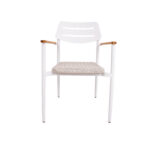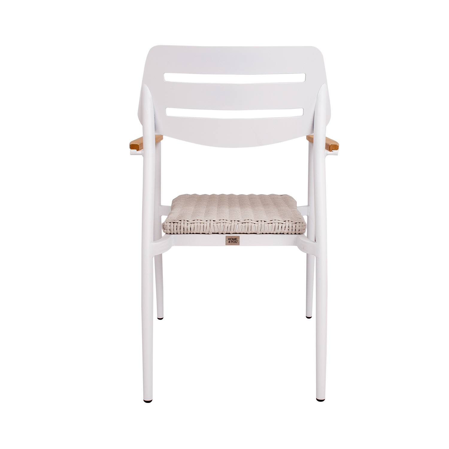 Tool WALES valge. Paigutades aiatoolid rõdule, terrassile või aeda, saab kujundada hubase istumisala, kus päeval kaunist ilma nautida või õdusaid õhtuid veeta. Valides juurde sobiva laua, on võimalik luua endale meelepärane ja harmooniline komplekt. Tooli iste on kaetud bee˛i plastikpunutisega. Käetoed on valmistatud naturaalsetest tiikpuidu liistudest. Tooli raam ja seljatugi on valget värvi alumiiniumist. Metalltoru mõõdud on D28x1,2mm. Tool on virnastatav, mis muudab selle hoiustamise hõlpsamaks. Tooli mõõdud on 56x60xH82cm.