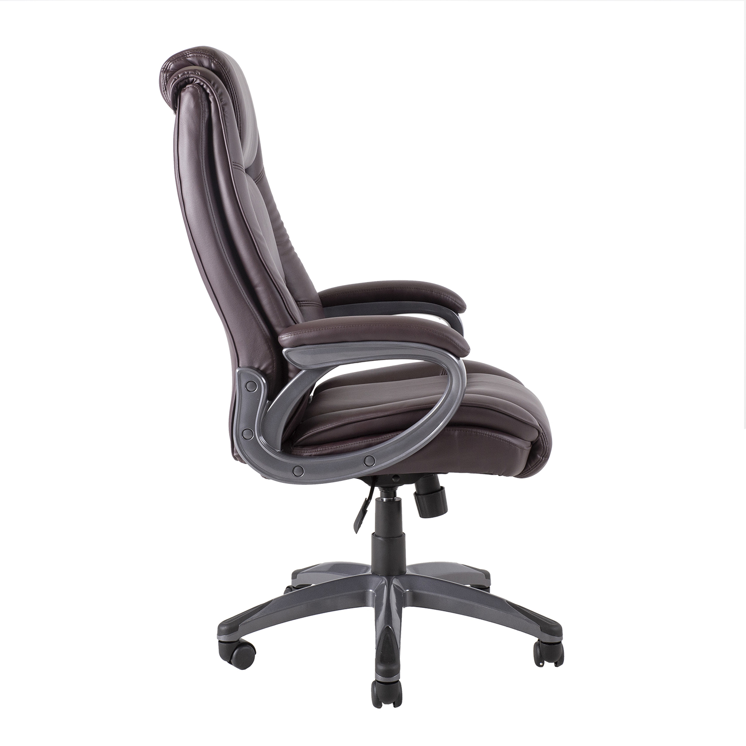 Töötool SAMSON pruun. Tooli pehme polsterdusega iste ja käetoed on kaetud kunstnahaga. Lukustatav kiikemehhanism tagab suurepärase istumismugavuse. Istme kõrgus on reguleeritav gaasamordi abil. Toolil on 5-haruline poleeritud alumiiniumist jalarist, R35cm ja plastikrattad 60mm. Tooli üldmõõdud on 73x73xH123-130cm. Istme laius 46cm, istme sügavus 48cm, istme kõrgus 47-54cm. Käetoe kõrgus istmest 20cm. Kaalupiirang 120kg.
