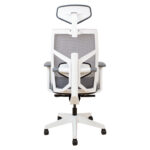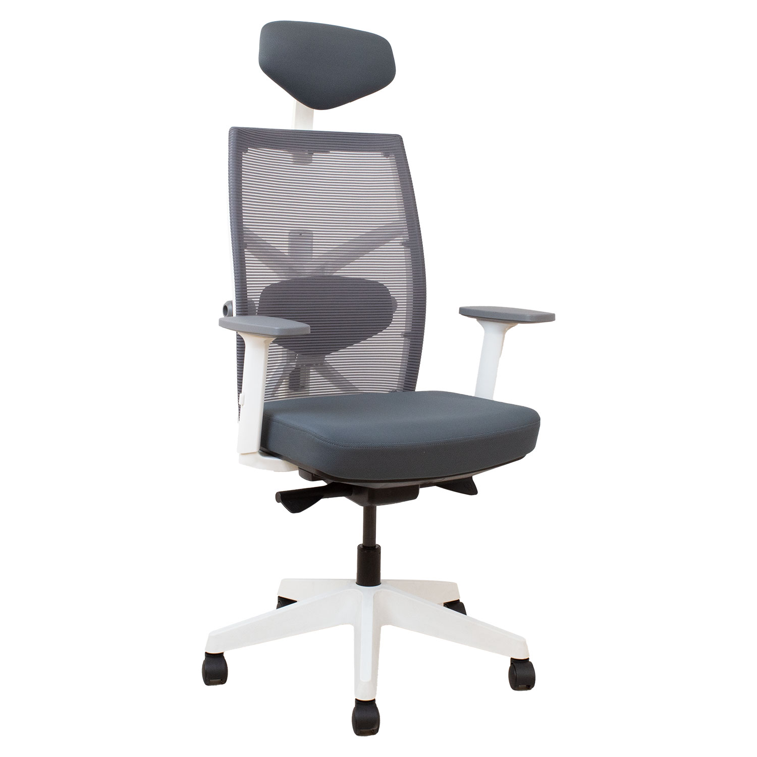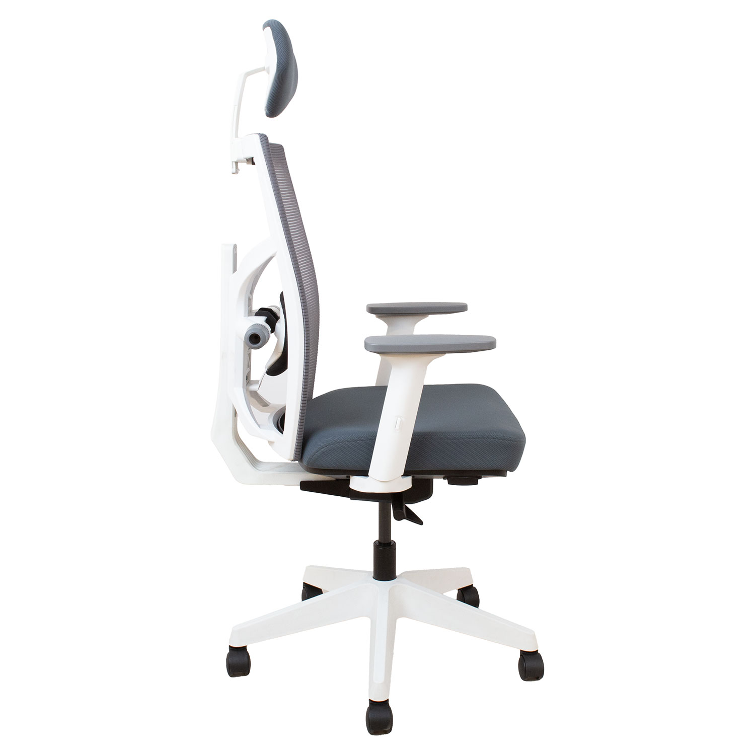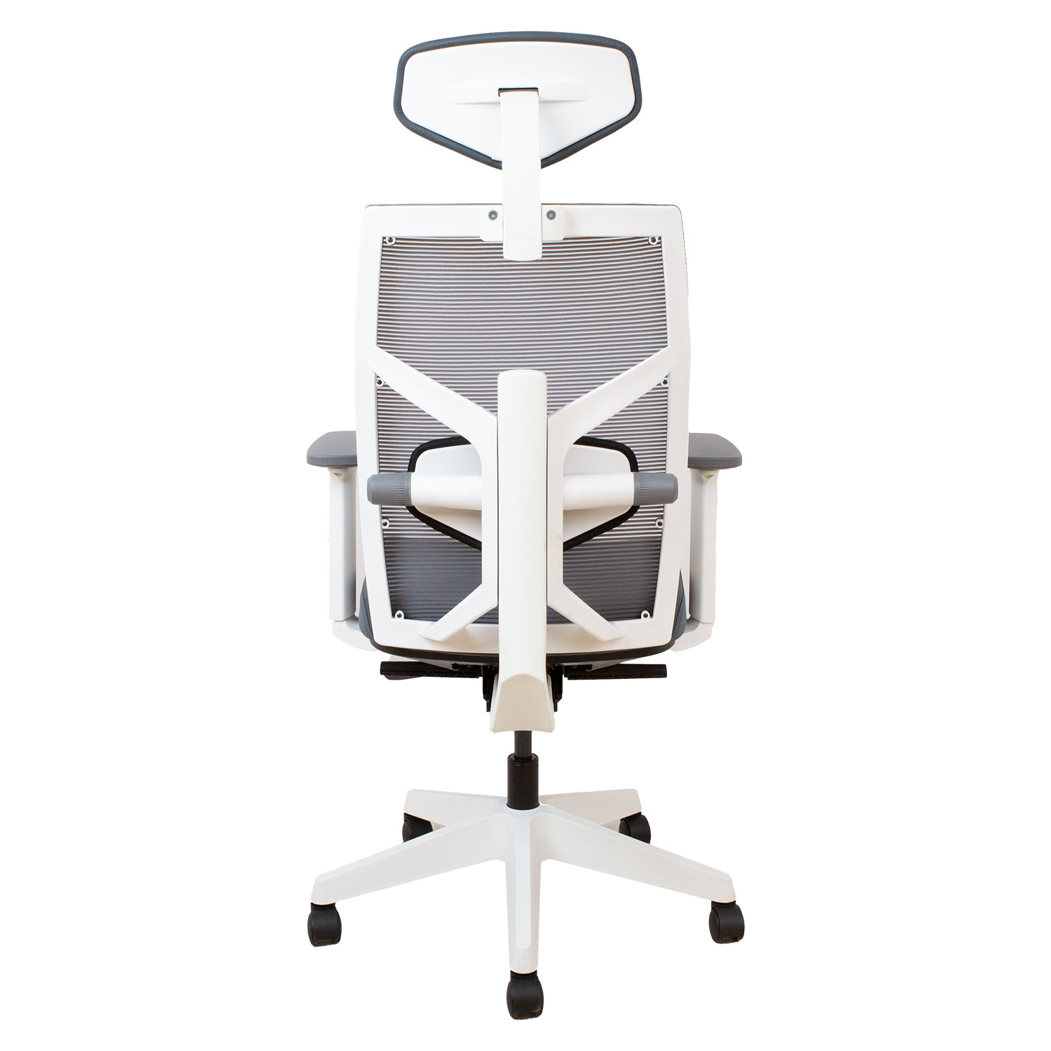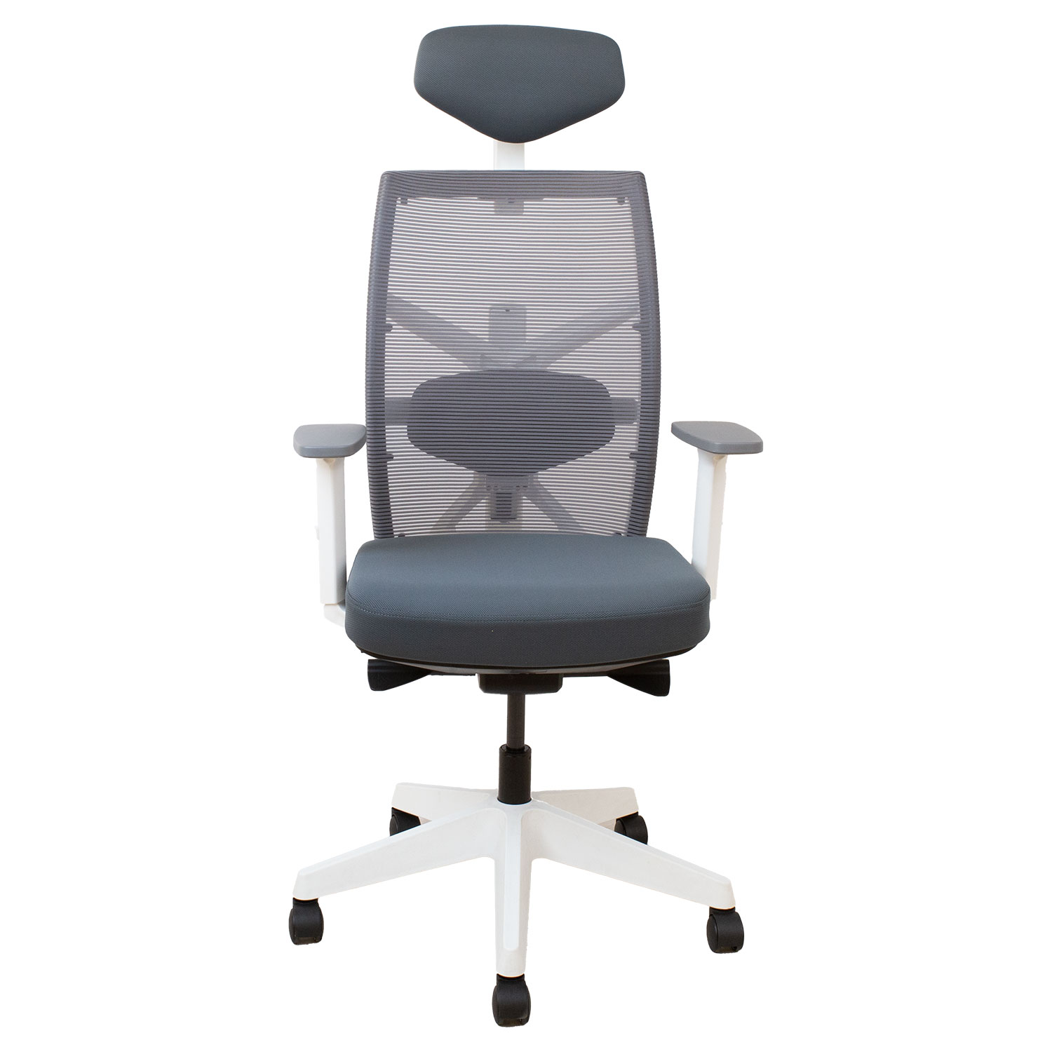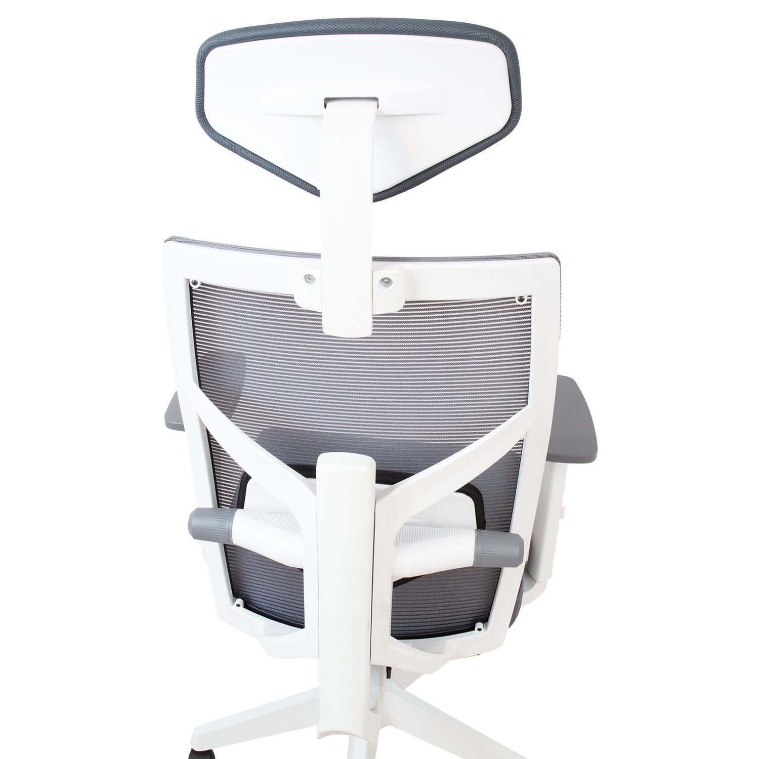 Töötool ANGGUN hall, valge raamiga. Iste on kaetud on polüesterkangaga, 50 000 Martindale’i. Selja- ja peatugi on kaetud polüestervõrkkangaga, mis tagab hea õhu liikuvuse. Kaalutundlik sünkroonmehhanism korrigeerib kiike jäikuse automaatselt vastavalt istuja kaalule. Reguleeritav nimmetugi. Istme sügavus on reguleeritav vahemikus 39,5-47,5cm. Istme kõrgus on reguleeritav gaasamordi abil. Käetoed on valgest ja hallist plastikust. Käetugede sügavus ja pöördenurk on reguleeritavad, kõrgus on reguleeritav vahemikus 21-31cm. Peatoe kõrgus on reguleeritav. 5-haruline plastikust jalarist on musta värvi, D70cm. Toolil on plastikrattad, 50mm. Tooli üldmõõdud on 70x70xH116-130,5cm. Tooli kõrgus on 116-130,5cm, seljatoe kõrgus 52,5cm (koos peatoega 72-76,5cm), istme kõrgus 42-52cm, istme sügavus 39,5-47,5cm, istme laius 45cm. Kaalupiirang 120kg.