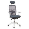 Töötool ANGGUN hall, valge raamiga. Iste on kaetud on polüesterkangaga, 50 000 Martindale’i. Selja- ja peatugi on kaetud polüestervõrkkangaga, mis tagab hea õhu liikuvuse. Kaalutundlik sünkroonmehhanism korrigeerib kiike jäikuse automaatselt vastavalt istuja kaalule. Reguleeritav nimmetugi. Istme sügavus on reguleeritav vahemikus 39,5-47,5cm. Istme kõrgus on reguleeritav gaasamordi abil. Käetoed on valgest ja hallist plastikust. Käetugede sügavus ja pöördenurk on reguleeritavad, kõrgus on reguleeritav vahemikus 21-31cm. Peatoe kõrgus on reguleeritav. 5-haruline plastikust jalarist on musta värvi, D70cm. Toolil on plastikrattad, 50mm. Tooli üldmõõdud on 70x70xH116-130,5cm. Tooli kõrgus on 116-130,5cm, seljatoe kõrgus 52,5cm (koos peatoega 72-76,5cm), istme kõrgus 42-52cm, istme sügavus 39,5-47,5cm, istme laius 45cm. Kaalupiirang 120kg.