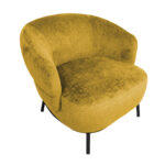 Tugitool GEMALA kollane. Tugitooli pehme polsterdusega iste on kaetud sametise polüesterkangaga, Martindale väärtus 41 000. Tooli karkass on valmistatud puidust ja vineerist. Tooli sees on pocket vedruplokk. Polsterduseks on kasutatud polüuretaanvahtu ja polüesterkiudu. Tooli üldmõõdud on 84x84xH75cm. Istme laius 58cm, istmesügavus 58cm, istme kõrgus 46cm. Käetoe kõrgus maast 64cm. Tugitoolil on mustad metallist jalad H17cm.