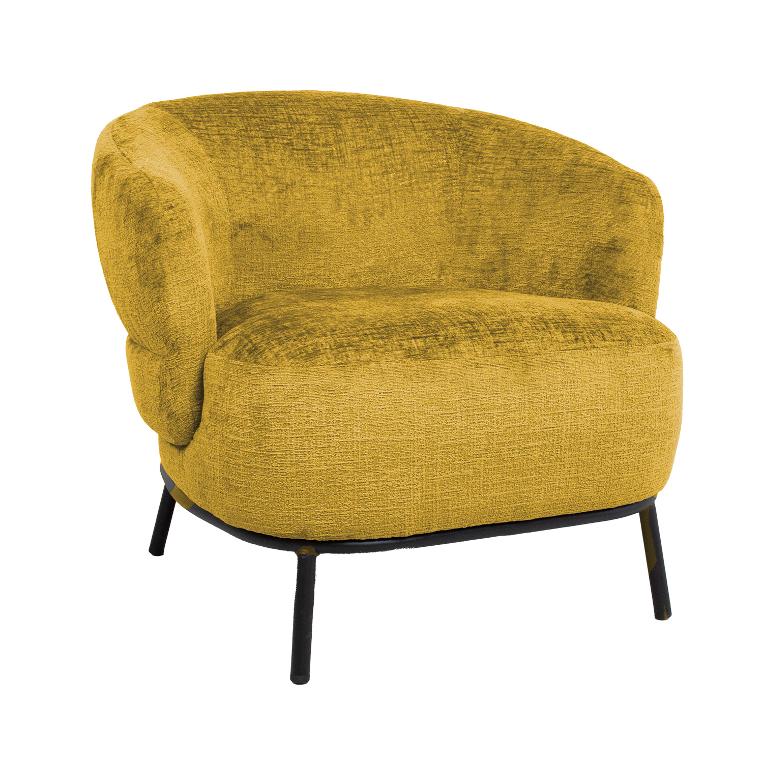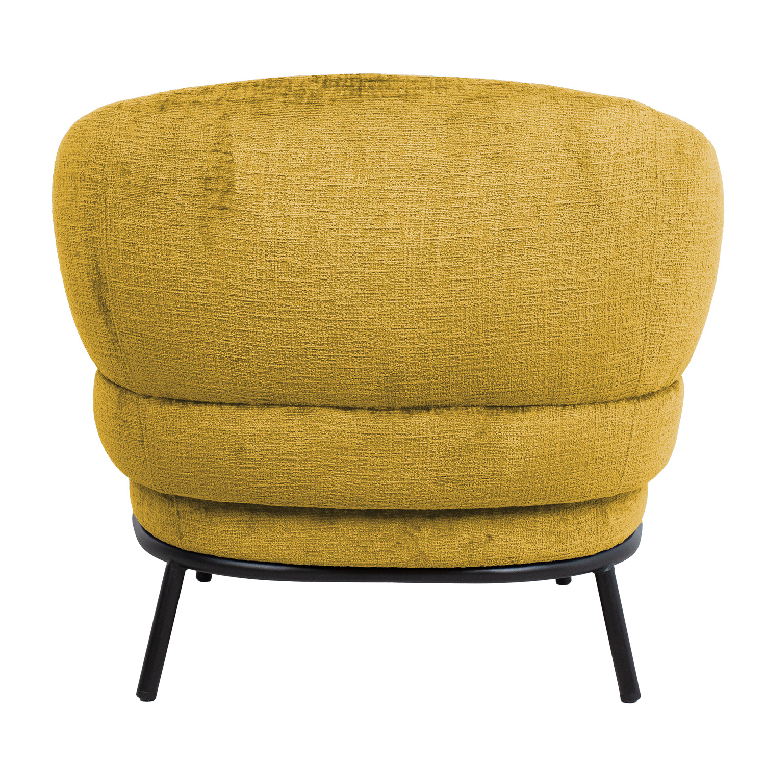 Tugitool GEMALA kollane. Tugitooli pehme polsterdusega iste on kaetud sametise polüesterkangaga, Martindale väärtus 41 000. Tooli karkass on valmistatud puidust ja vineerist. Tooli sees on pocket vedruplokk. Polsterduseks on kasutatud polüuretaanvahtu ja polüesterkiudu. Tooli üldmõõdud on 84x84xH75cm. Istme laius 58cm, istmesügavus 58cm, istme kõrgus 46cm. Käetoe kõrgus maast 64cm. Tugitoolil on mustad metallist jalad H17cm.