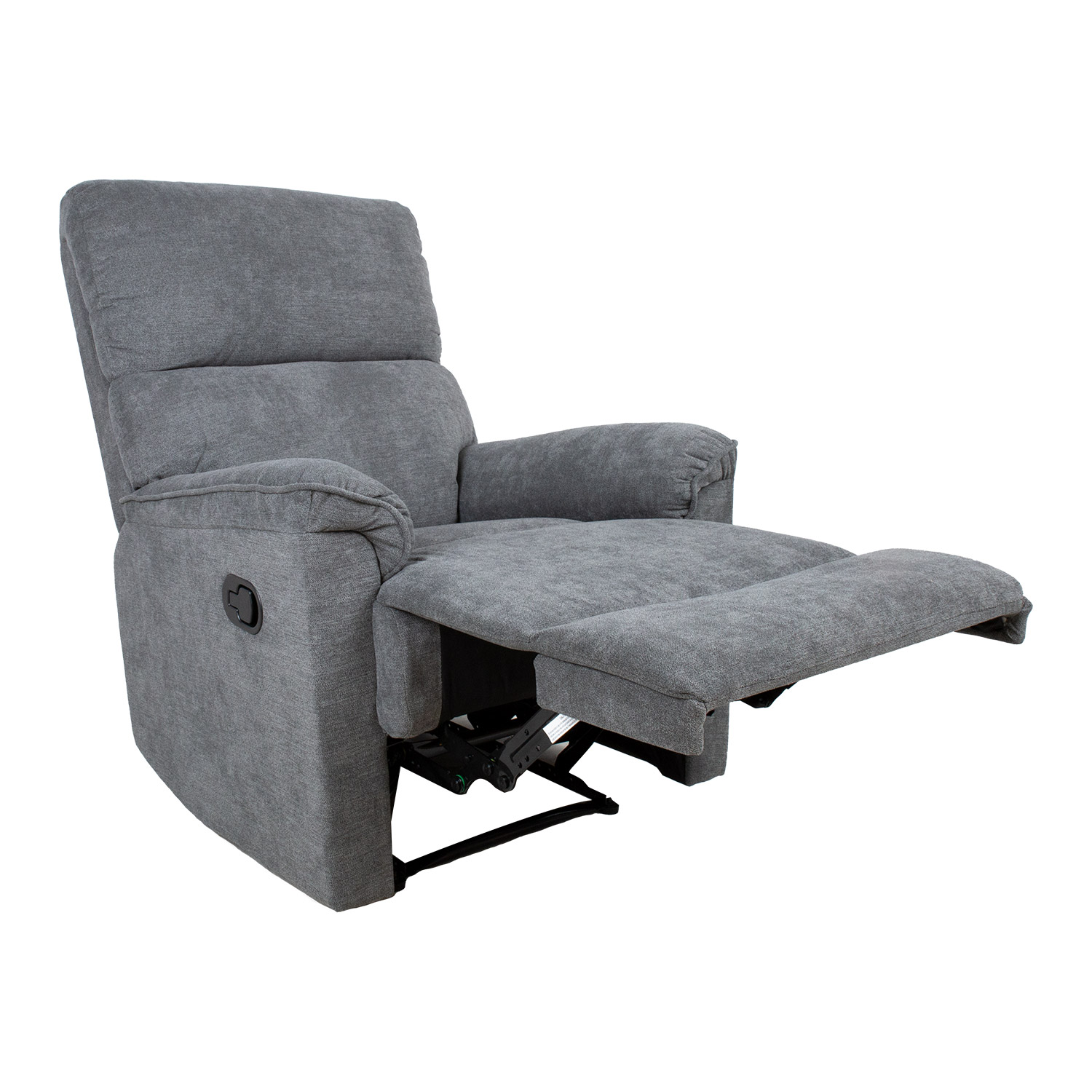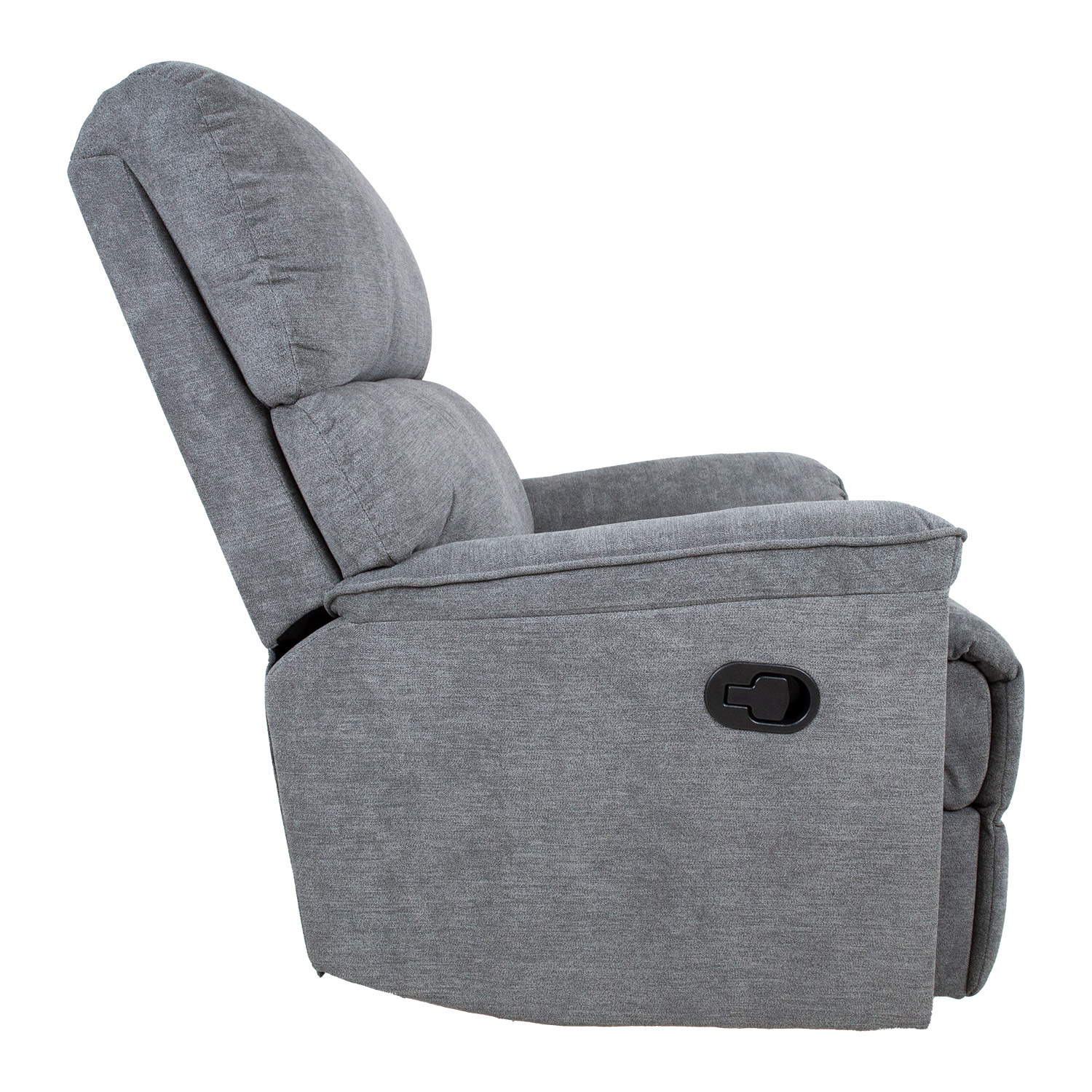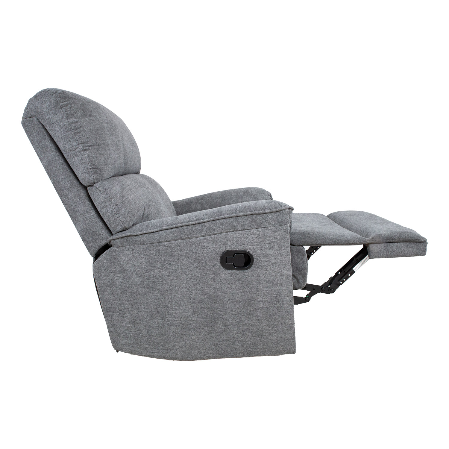 Tugitool GUSTAV manuaalne recliner 80x92xH104cm, hall. Recliner tüüpi tugitooli jalatoe asendit on võimalik muuta manuaalse mehhanismi abil. Jalatuge üles tõstes liigub seljatugi sujuvalt kaasa. Jalatoe tõstmiseks tõmmake istme välisküljel asuv kang üles. Surudes jalatuge alla fikseerub see automaatselt algasendisse. Kattematerjal: 100% polüesterkangas, Martindale’i väärtus vahemikus 10 000-15 000. Karkass: puit, metall. Polsterdus: polüuretaanvaht 24kg/m³. Tugitooli üldmõõdud on 80x92xH104cm. Istme laius 43cm, istme sügavus 43cm, istme kõrgus 49cm. Seljatoe kõrgus 66cm. Käetoe kõrgus maast 60cm.