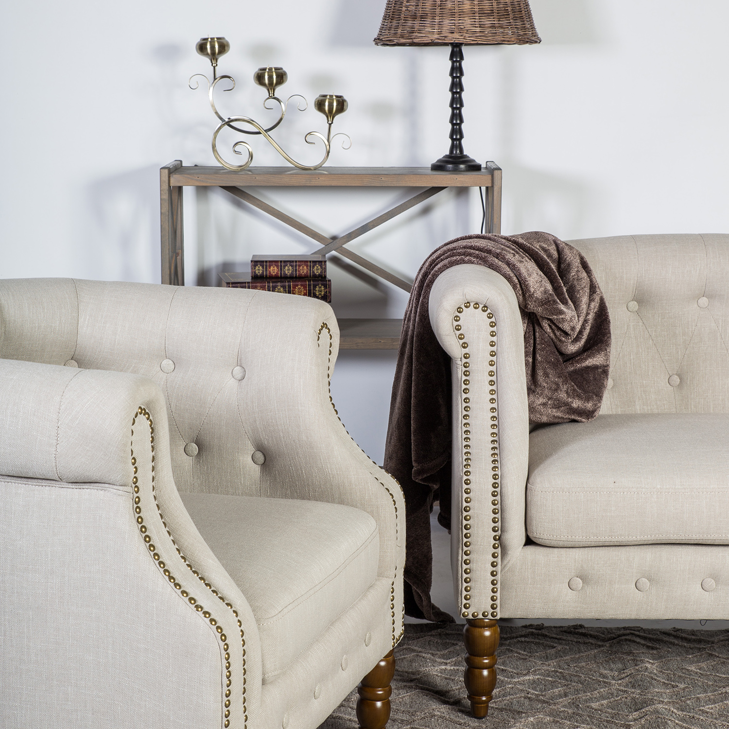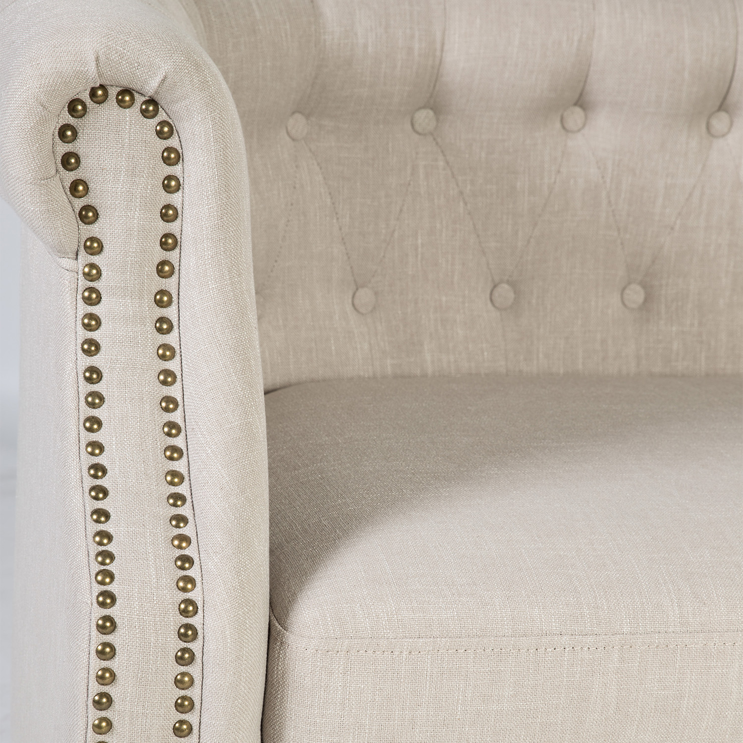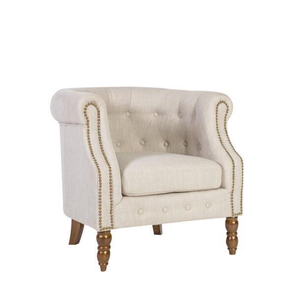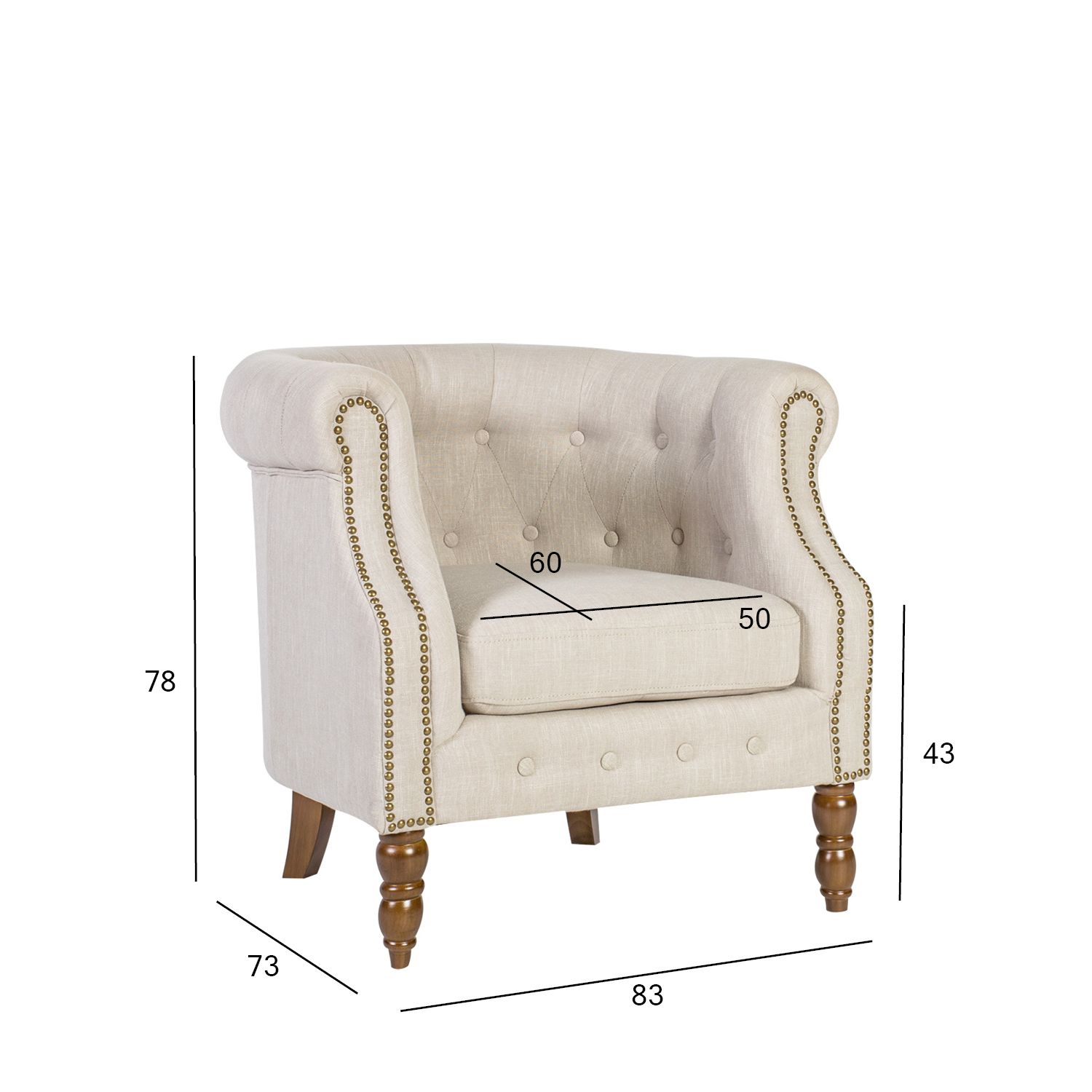 Tugitool HOLMES bee˛. Tugitool on kaetud bee˛i linase välimusega kangaga. Kattematerjal: 57,7% polüester, 25,7% viskoos, 16,6% linane kangas. Polsterdus: polüuretaanvaht. Tugitoolil on puidust jalad. Tugitooli üldmõõdud on 83x75xH78cm.