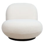 Ümar ja pehme, karvase kangaga kaetud 360 °pöörlev tugitool on pilkupüüdev sisustuselement, mida on lihtne sobitada erineva stiili või otstarbega ruumi.