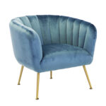 Tugitool TUCKER meresinine. Tugitool on kaetud meresinise sametkangaga. Kattematerjal on 100% polüesterkangas. Tugitoolil on kuldsed roostevabast terasest jalad. Toote mõõdud on 78x71xH69cm.