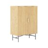 TV laud BASSEL 120x40xH50cm, 3D melamiin. TV laud on valmistatud heleda puidudekooriga melamiinplaadist. Ribilised esipaneelid ja kuldsed käepidemed annavad TV lauale trendika välimuse. Metallist jalad ja alusraam on viimistletud musta pulbervärviga.