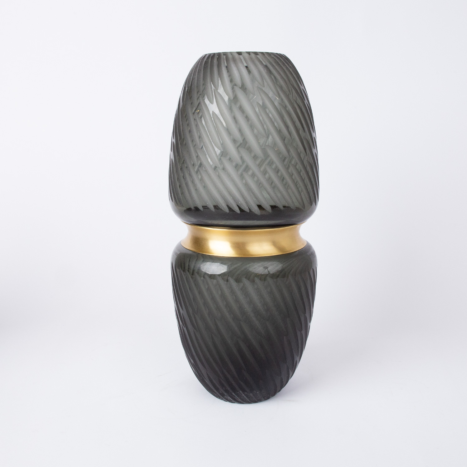 Vaas LUXO, D12xH28cm roheline/kuldne rõngas