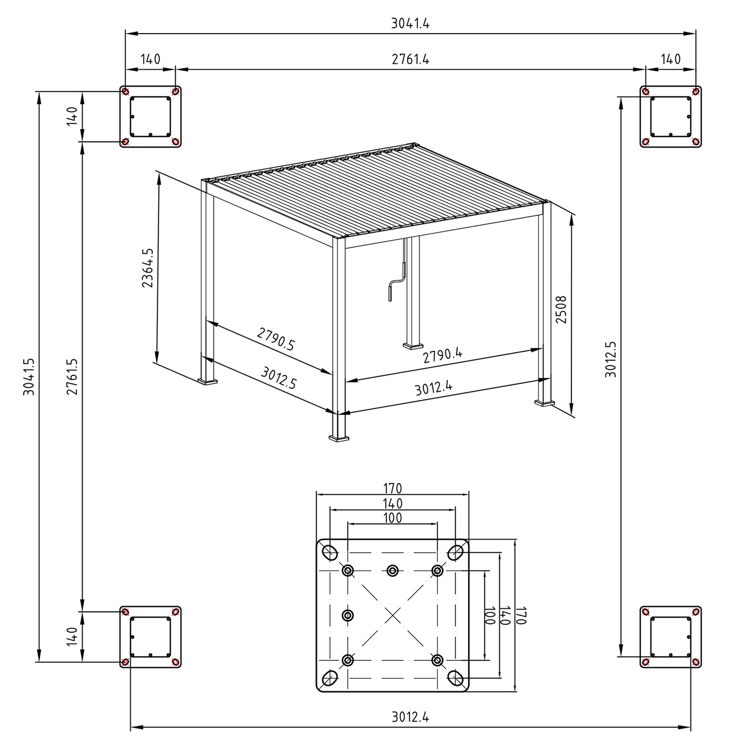 Varikatuse täpsed mõõdud on 3012,5×3012,5x2508mm.