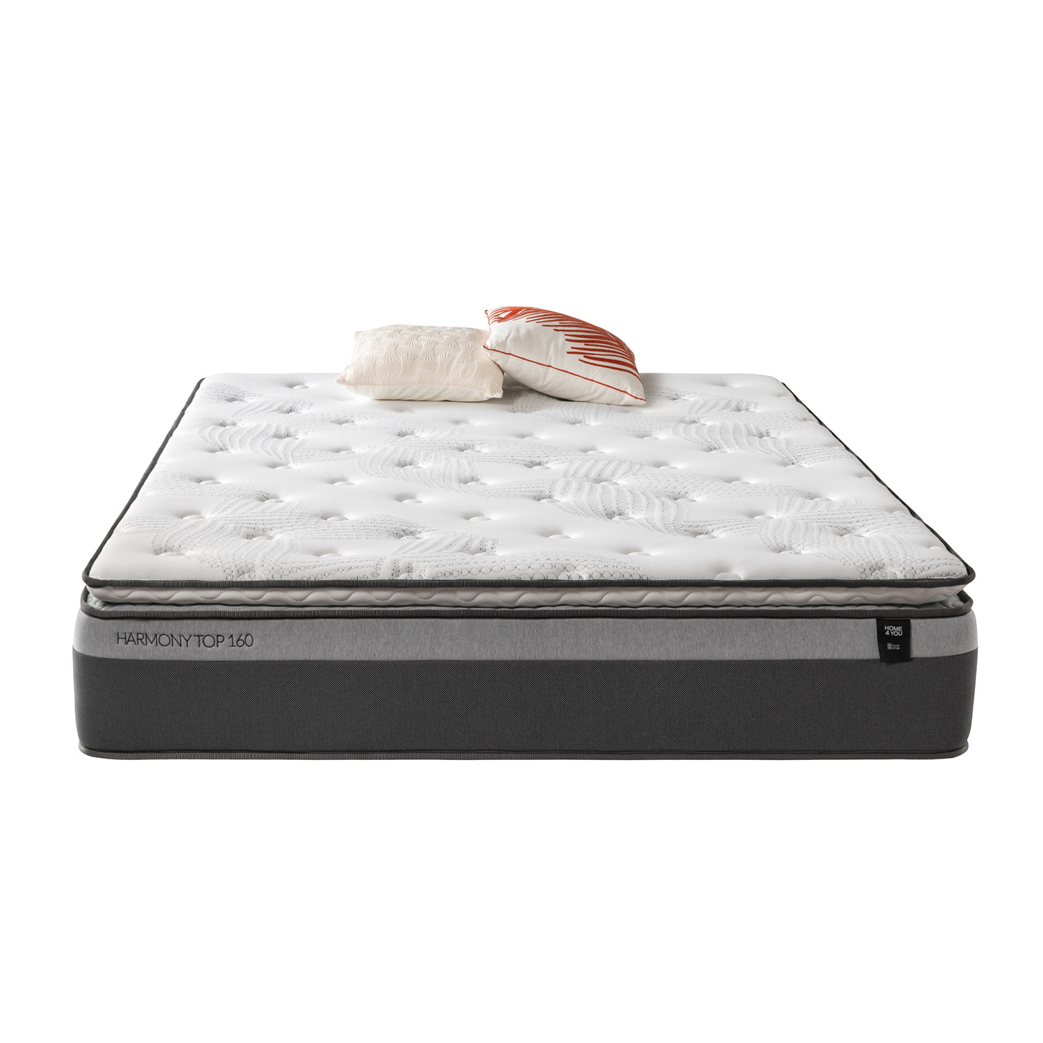 Vedrumadrats HARMONY TOP 160x200cm. PERFECT SLEEP BY HOME4YOU. Keskmise jäikusega madratsil on pakitud deluxe-pocket vedrustus (1,9mm/äärtes 2,2mm), mida katab vildikiht ja 3,5cm poroloonikiht. Vedruploki kõrgus on 26cm. Vedrumadratsi külge on kinnitatud kattemadrats, mis pakub lisamugavust ja võimaldab paremini lõõgastuda. Kattemadratsi sisuks on kvaliteetne profileeritud 3,5cm poroloon, mis laseb õhuvoolul liikuda ja niiskust ära juhtida. Hele stretch-kangast madratsikate on nahasõbralikust ja pehmest puuvilla-polüestrist (kangakaal 280g/m2). Kangas, vilt ja vatiin vastavad rahvusvahelisele Öko-Tex 100 standardile. Madrats on pakitud rulli, et seda oleks lihtsam transportida. Madrats vajab oma esialgse kuju taastamiseks kuni 2 tundi aega. Eemaldage ettevaatlikult kilepakend ja asetage madrats voodi peale. Toote mõõdud on 160x200xH33cm.