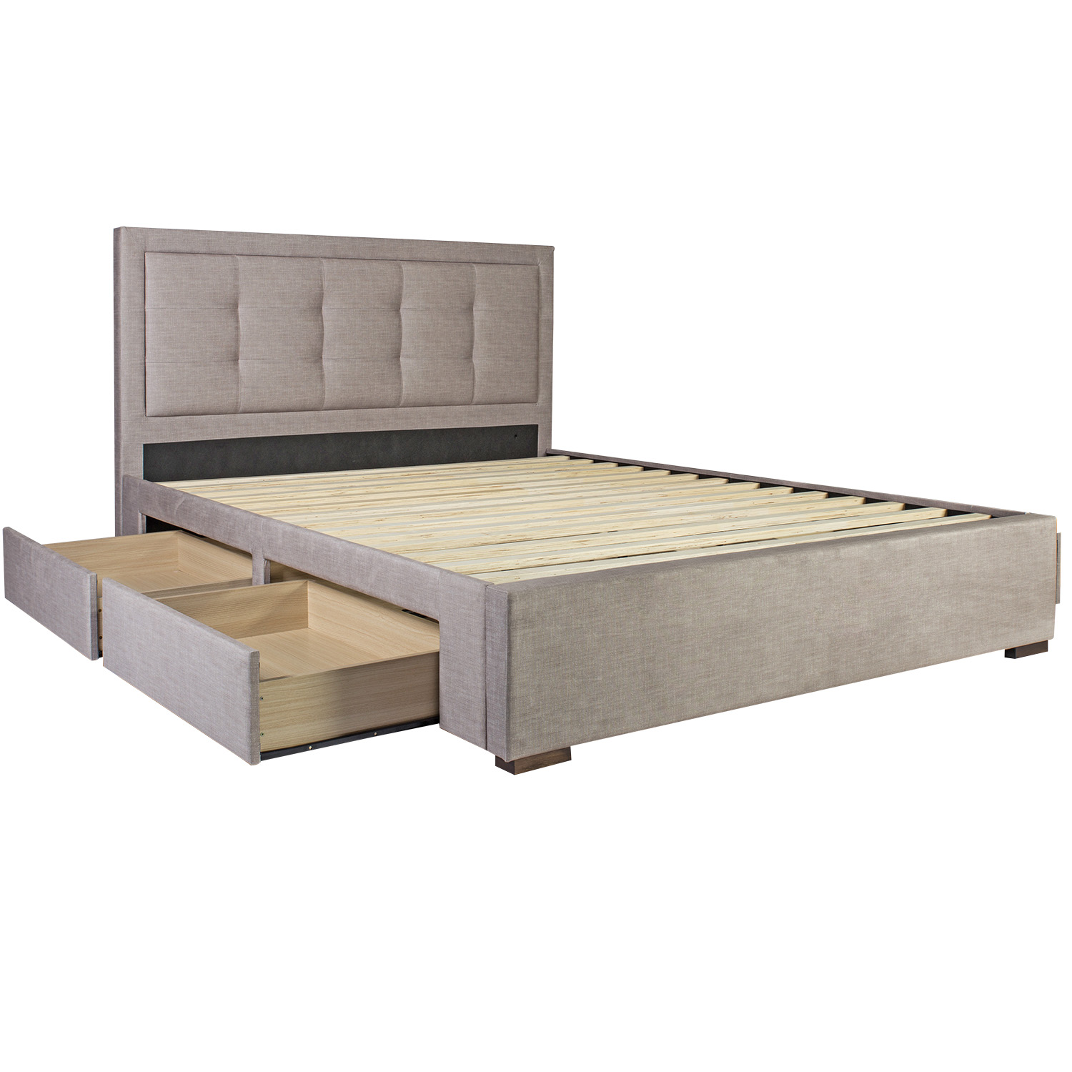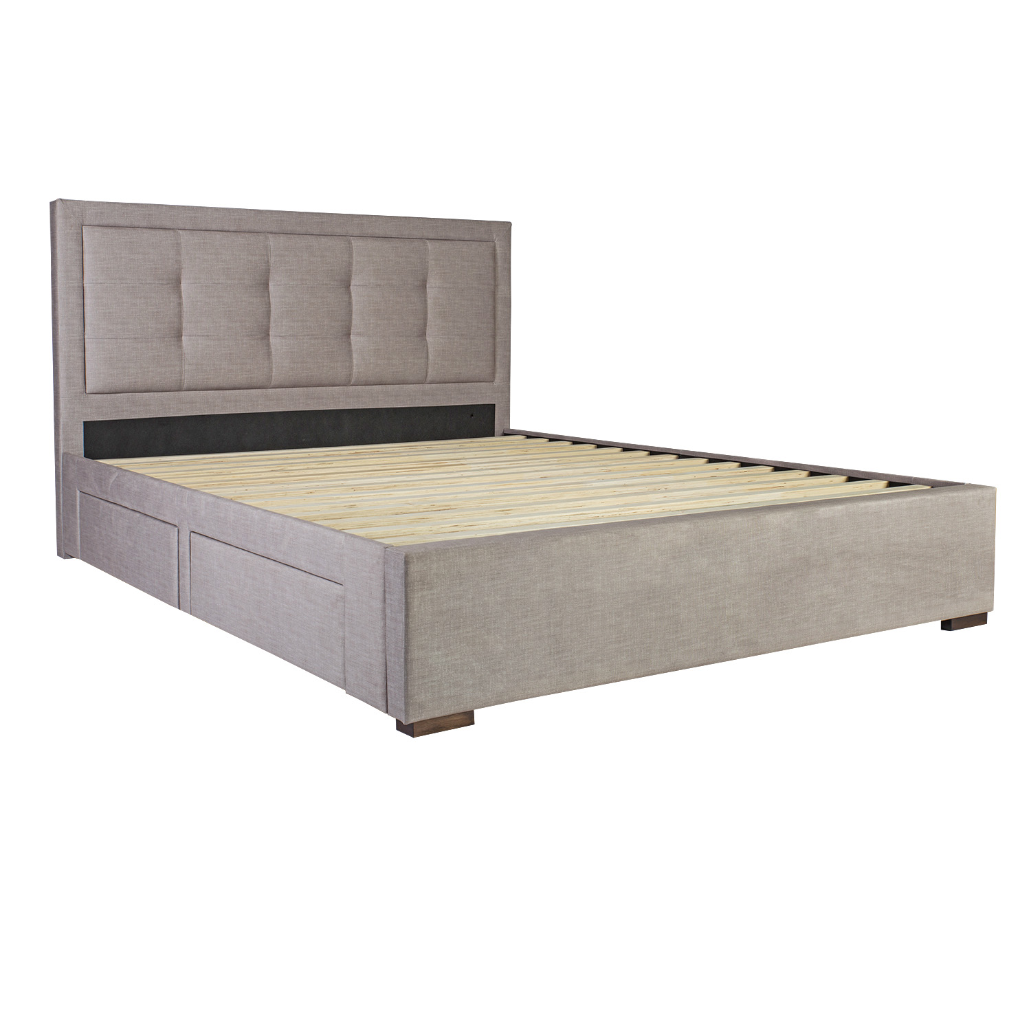 Voodi DUKE 160x200cm, ilma madratsita, bee˛. Voodi alusraamiraami sees on 4 ruumikat sahtlit. Sahtlid liiguvad metallsiinidel. Voodi korpus on valmistatud MDF plaadist ja kaetud bee˛i polüesterkangaga. Voodil on cappuccino toonis täispuidust jalad. Komplekt sisaldab voodi peatsit ja põhjalippe. Madrats ei kuulu komplekti. Sobiva madratsi mõõdud on 160x200cm. Voodi üldmõõdud on 164,5x215xH110cm.