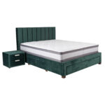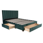 Voodi GRACE 160x200cm, roheline. Voodi raami sees asuvad ruumikad panipaigad. Sahtlitesse saab mugavalt mahutada nii tekid, padjad kui muu vajaliku. Voodi korpus on valmistatud MDF plaadist ja kaetud rohelise polüesterkangaga. Komplekt sisaldab voodijalgu, peatsit ja voodi põhjalippe. Madrats ei kuulu komplekti. Sobiv madrats on mõõtudega 160x200cm. Toote mõõdud on 165x215x111cm.