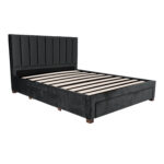 Voodi korpus on valmistatud MDF plaadist ja kaetud tumehalli polüesterkangaga.