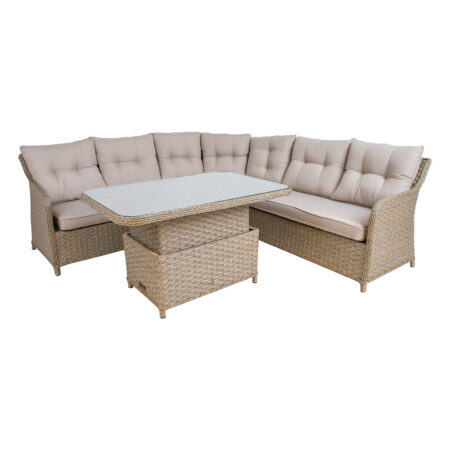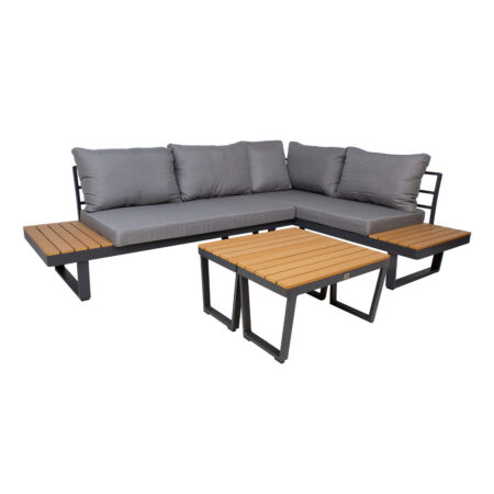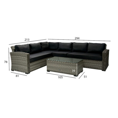 Aiamööbli komplekt GENEVA laud ja nurgadiivan, hall.