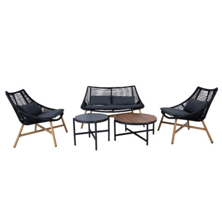 Aiamööblikomplekt MALAGA laud, diivan ja 2 tooli, must.