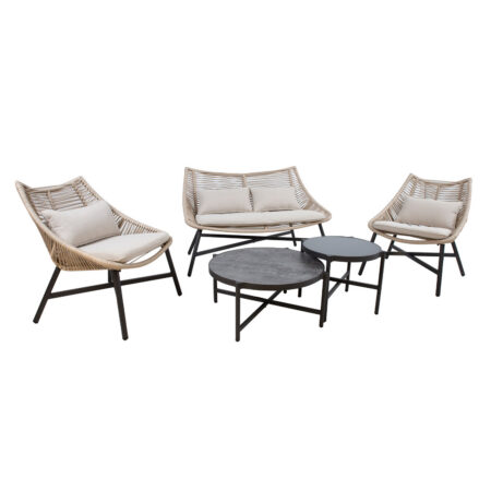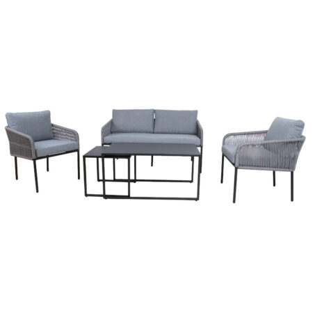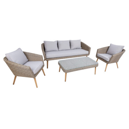 Aiamööblikomplekt FLORIDA laud, diivan ja 2 tugitooli. hall.