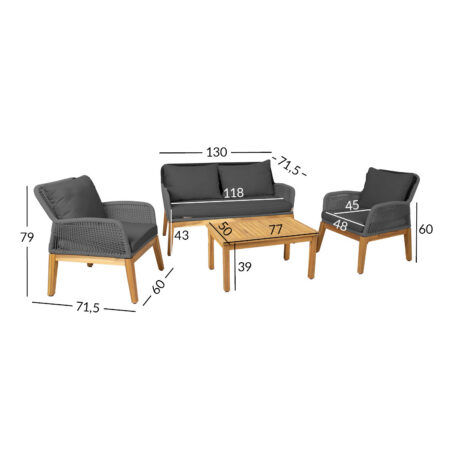 Aiamööblikomplekt LEIPZIG laud, diivan ja 2 tooli.