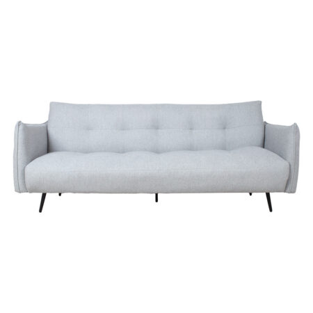 Diivanvoodi KARIN 208x80x80cm, hall. Diivani kattematerjal: 100% polüesterkangas. Karkass ja vedrustus: puit, vineer, MDF, siksak vedrustus. Diivani polstris on kasutatud taaskasutatud porolooni. Diivanil on click-clack mehhanism, mille abil on lihtne muuta diivan magamisasemeks. Diivani üldmõõdud on 208x80xH80cm. Diivanvoodi mõõdud avatuna on 187x105xH41cm. Diivanil on heledad puidust jalad.
