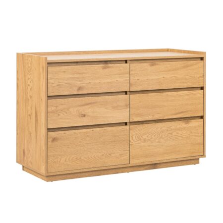 Kummut SACHA 6-sahtliga 120x40xH80cm, tammedekooriga melamiin. Kummut on valmistatud melamiinkattega mööbliplaadist. Sahtlid liiguvad metallsiinidel.
