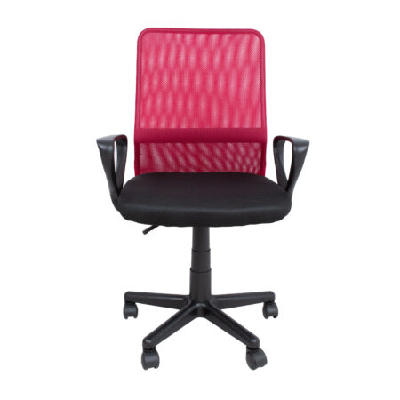Töötool BELINDA must/punane. Kergelt polsterdatud tooli iste on kaetud polüesterkangaga. Seljatugi on kaetud polüestervõrkkangaga. Istme kõrgus on reguleeritav gaasamordi abil. Käetoed on mustast plastikust. 5-haruline jalarist on mustast plastikust, R27cm. Toolil on plastikrattad, 50mm. Tooli kõrgus on 86,5-98,5cm, istme laius 46,5cm, istme sügavus 46,5cm, seljatoe laius 44cm, seljatoe kõrgus 55,5cm. Toote mõõdud on 59x56xH86,5-98,5cm. Tooli kaalupiirang on 80kg.
