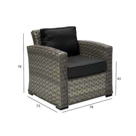 Tugitooli üldmõõdud on 75x78xH78cm. Istme kõrgus raami ääreni 33cm, koos padjaga 43cm.