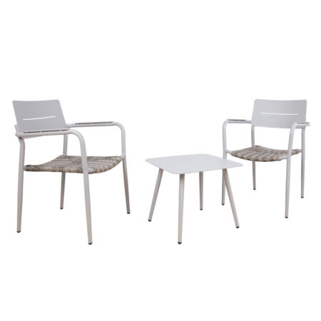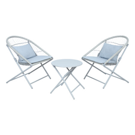 Kokkupandav rõdukomplekt YOLANDA 2 tooli ja laud, helehall.