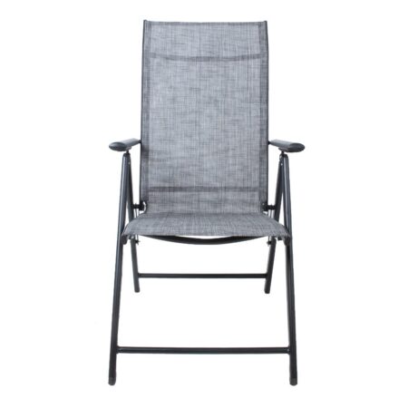 Tool DUBLIN 54x69xH102cm, hall. Kokkupandav, reguleeritava seljatoega aiatool on mugav ja praktiline valik. Tooli textilene iste laseb hästi õhku läbi, kuivab kiiresti ja seda on lihtne hooldada. Tooli raam on valmistatud terasest ja viimistletud tumehalli pulbervärviga. Seljatoe reguleerimiseks tõstke käetoed üles, valige sobiv seljatoe asend ja fikseerige käetoed. Võimalik on valida viie erineva positsiooni vahel. Kokkupanduna on tooli lihtne kaas võtta või hoiustada. Tooli mõõdud kokkupanduna 54x81x17cm. Istme laius 45cm, istme sügavus 45cm, istme kõrgus 44cm. Seljatoe kõrgus 69cm, käetoe kõrgus maast 63cm. Kaalupiirang 100kg.