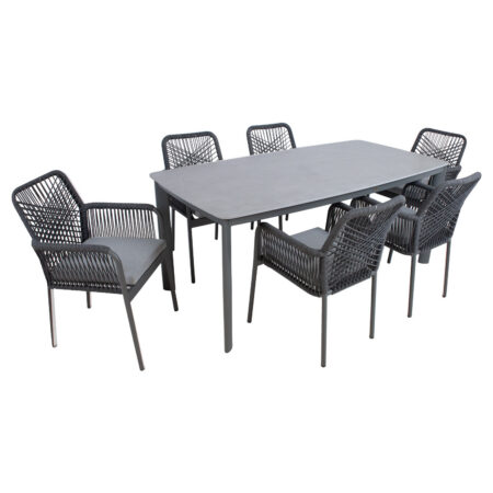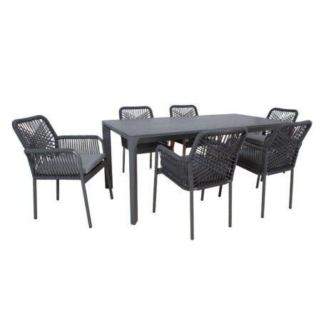 Aiamööblikomplekt DUBLIN laud ja 6 tooli, hall.