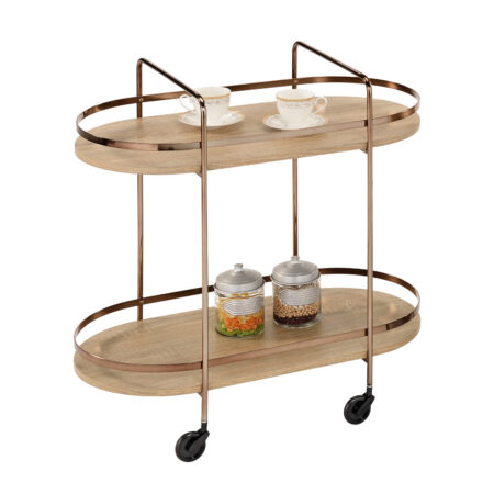 Serveerimislaud GENOVA helepruun. Maitsekas ning mugavalt kasutatav serveerimislaud on abiks igapäevaselt, kuid muudab ka kodus võõrustamise hõlpsamaks. Laua riiulid on valmistatud tammedekooriga kaetud laminaatplaadist. Terastorud on viimistletud elegantses ampanjatoonis. Serveerimislaual on neli ratast selle mugavamaks liigutamiseks. Laua mõõdud on 80x42xH80cm.