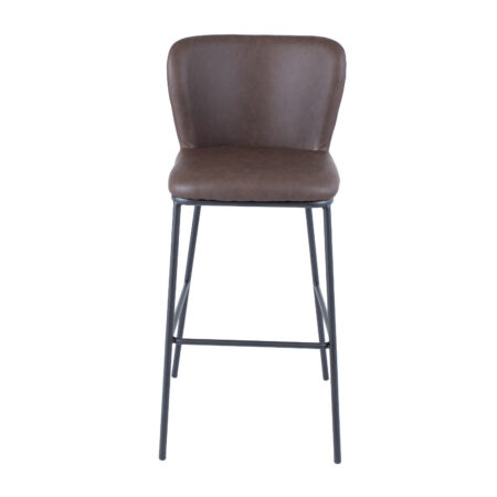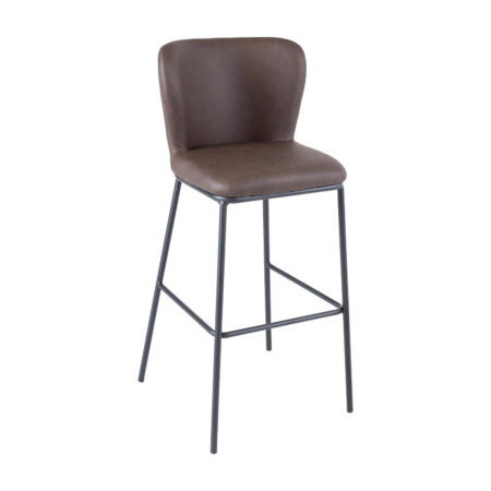 Baaritool SAVOY pruun. Tooli iste ja seljatugi on polsterdatud ja kaetud pruuni kunstnahka meenutava kangaga. Tooli jalad ja raam on valmistatud metallist ja viimistletud musta pulbervärviga. Tooli üldmõõdud on 47x51xH104cm. Istme laius 43cm, istme sügavus 39cm, istme kõrgus 77cm. Kaalupiirang 100kg.