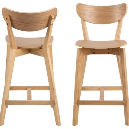 Elegantne retrohõnguline baaripukk. Ümar iste kumera seljatoega. Lakitud tammespooniga iste ja seljatugi. Lakitud puidust alus jalatoega. Kergesti hooldatav pind. Istumiskõrgus on 66,5cm. Mõõdud 45x49xH105cm.